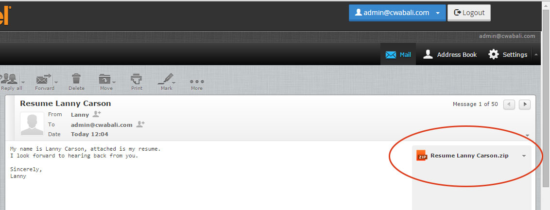 Itu dia file attachmentnya.. Download dulu lah.. siapa tau bule-bule cakep gitu.. Buat yang masi awam, format File .ZIP itu artinya format file Compressed.. Itu format file yang cukup umum untuk orang yang ngirim lamaran, atau attachment apapun itu..